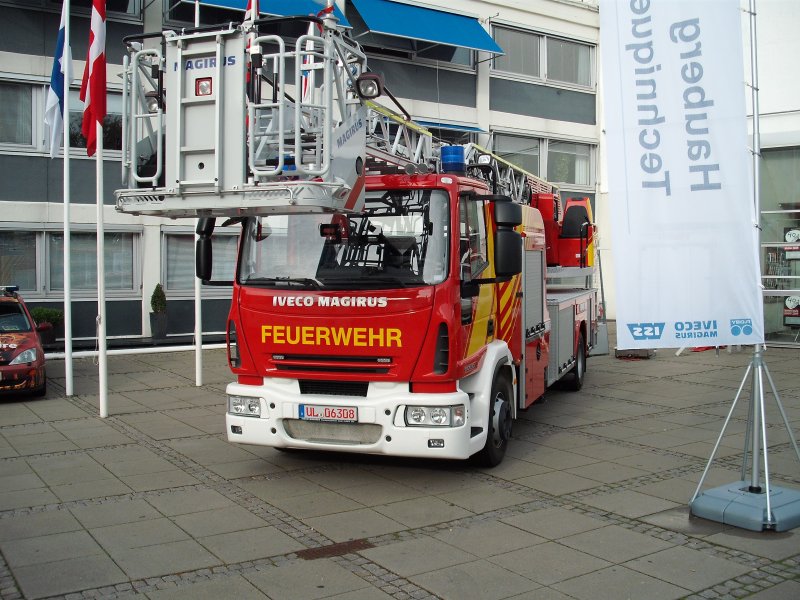Diese Drehleiter auf einem IVECO MAGIRUS einer deutschen Feuerwehr konnte ich in meinem letzten Urlaub in Dänemark, August 2009, bei einem Feuerwehrkongreß in Aalborg auf dem Chip festhalten.