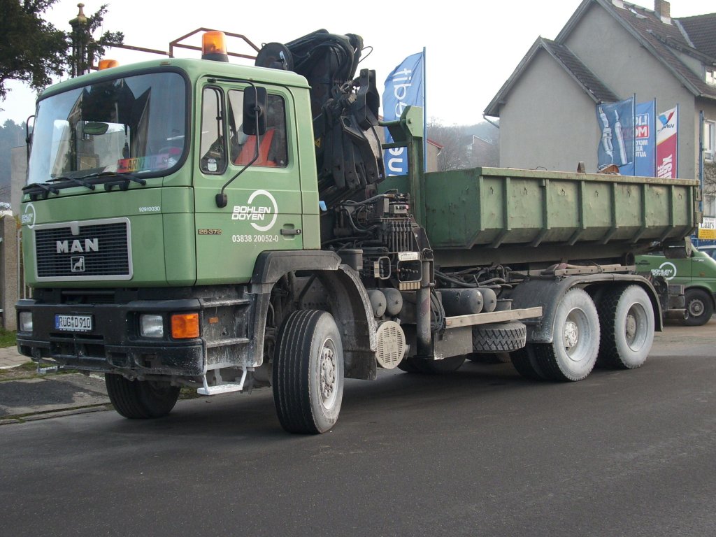Baumaterial wurde am 14.Dezember 2009 von diesen MAN-LKW in Bergen/Rügen entladen.