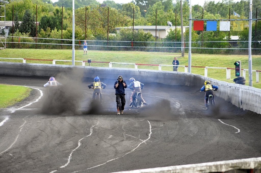Startprozedere beim Lauf zur LMMV & OBC am 27.06.09 im Stralsunder Speedway-Stadion "Paul-Greifzu" des MC Nordstern aus der Rückansicht