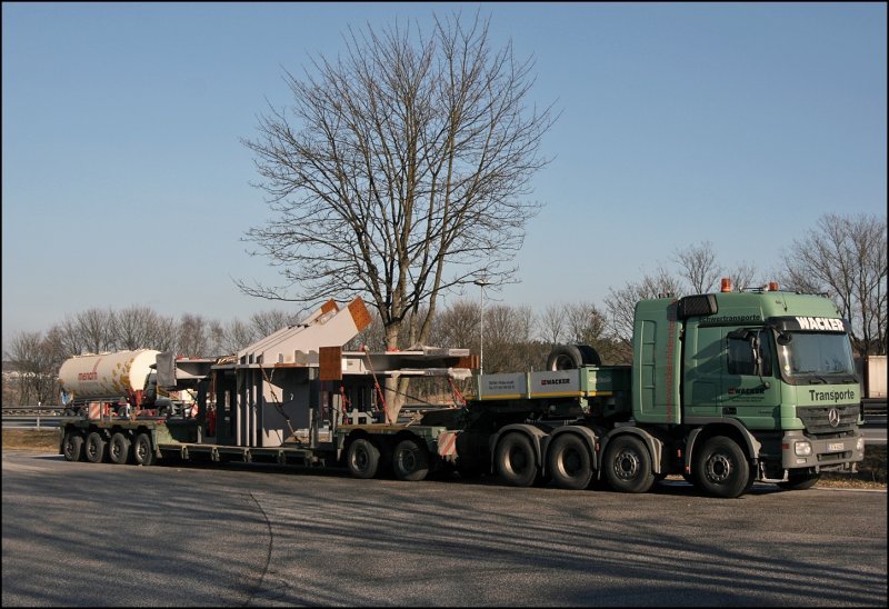 Portraitaufnahme vom Actros 4154 der Wacker Schwertransporte. (29.01.2009)