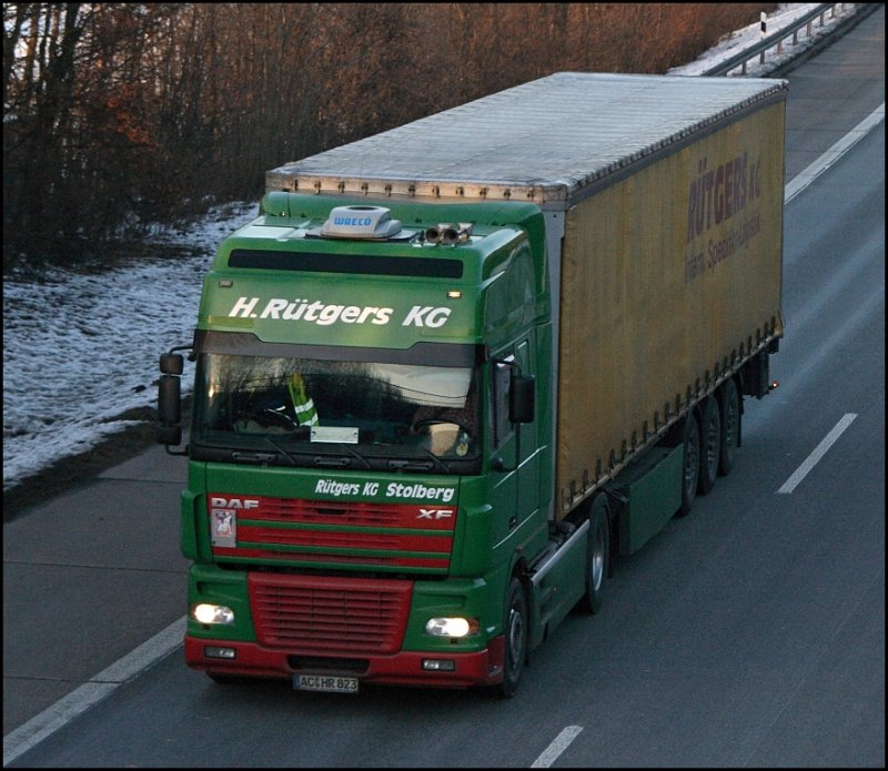 DAF XF95.480 der Spedition H.Rütgers KG ist in Richtung Heimat Süden unterwegs. (29.01.2009)