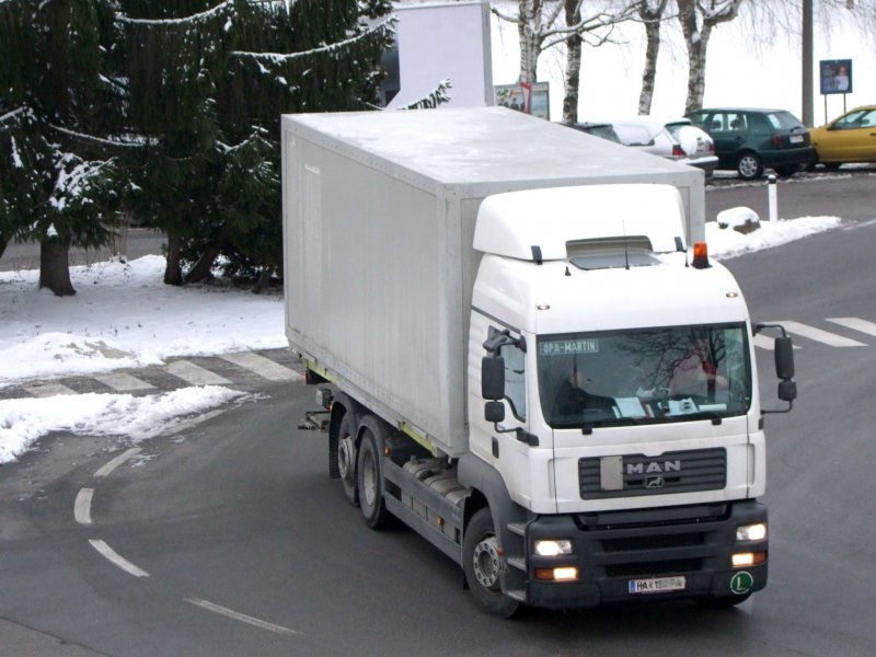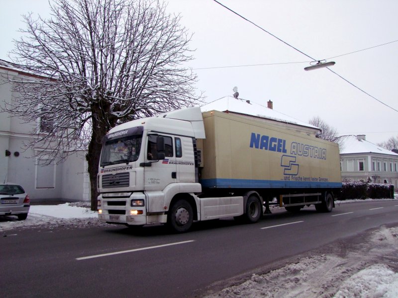 MAN einer Halleiner Firma auf den Strassen von Ried i.I.; 090130