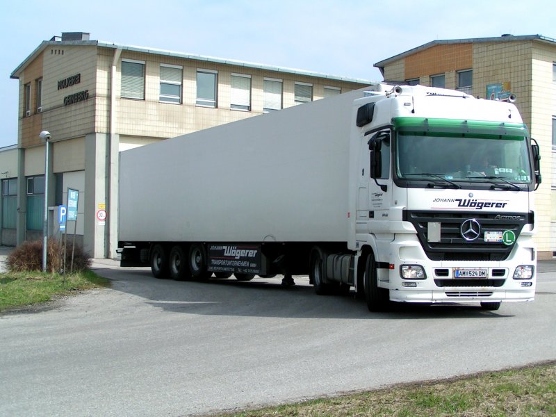 Actros1844 einer renomierten Rieder Spedition als Werbeträger für A380 tritt am Freitagnachmittag noch eine Tour an; 090327