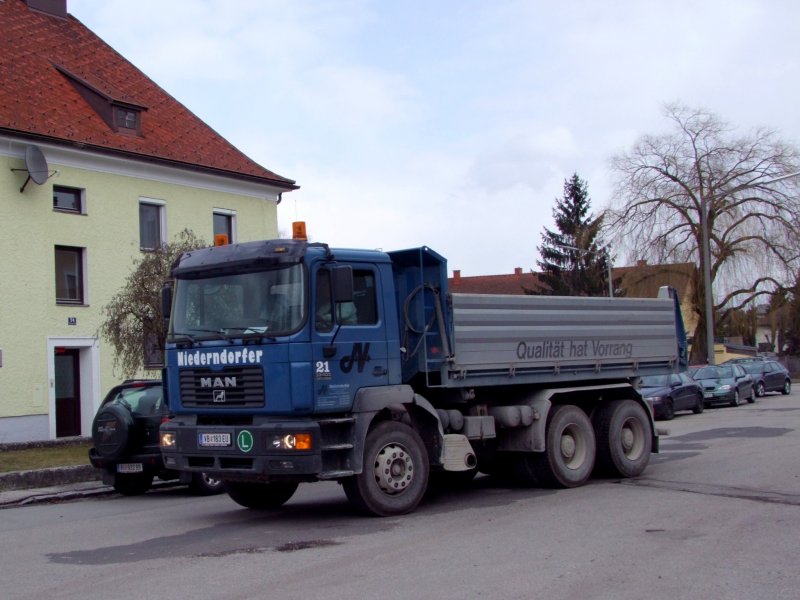 MAN 33.403 ist am Weg zu einer Baustelle, Ried i.I. 090320