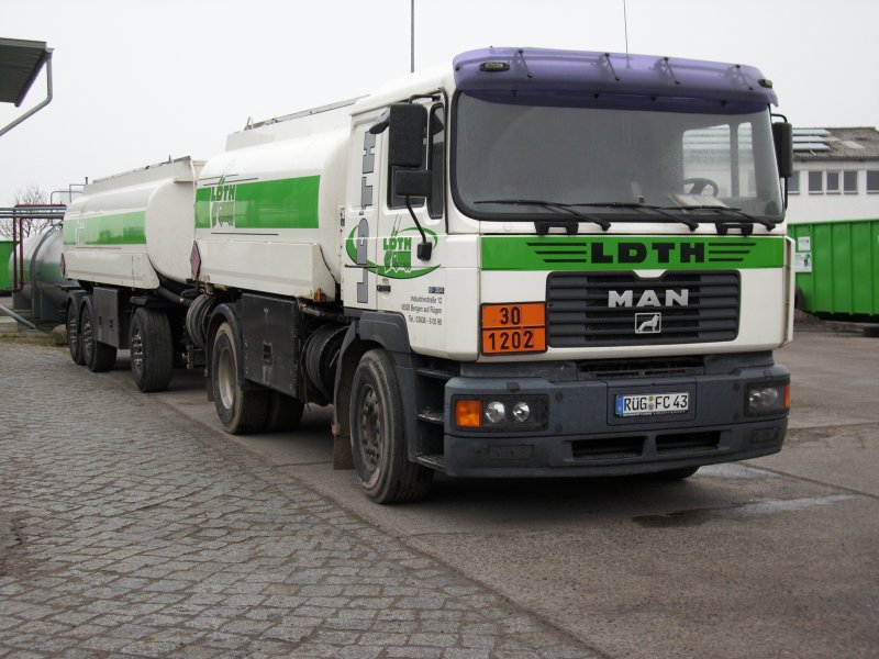 MAN-LKW am 08.März 2009 an einer Heizölstation im Industriegelände von Bergen/Rügen.