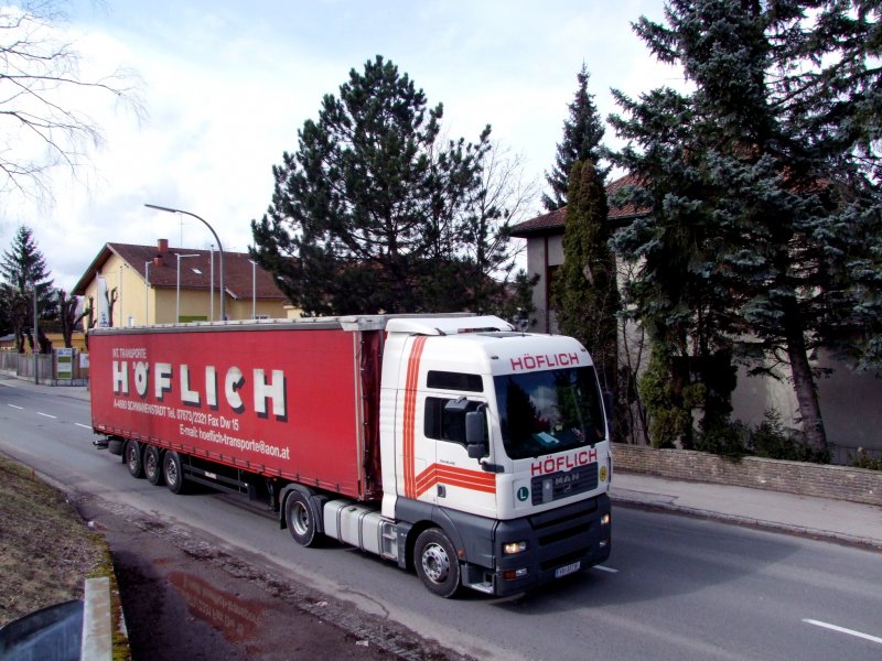 MAN-TGA18.410 der Spedition Höflich auf der B143 Richtung Heimat; 090327