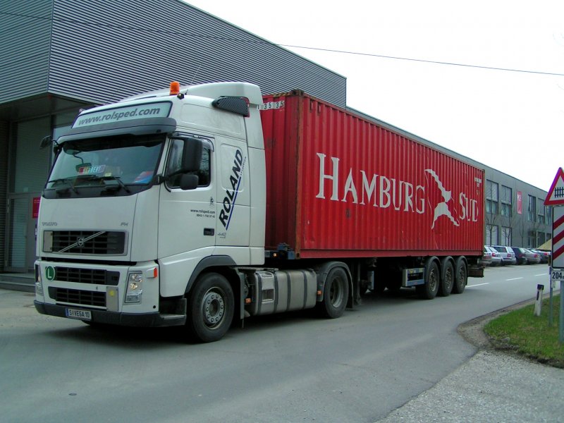 VOLVO-FH440 einer Salzburger Spedition ist in St.Martin/Innkr. mit einem "Hamburg-Süd" Container unterwegs;090331