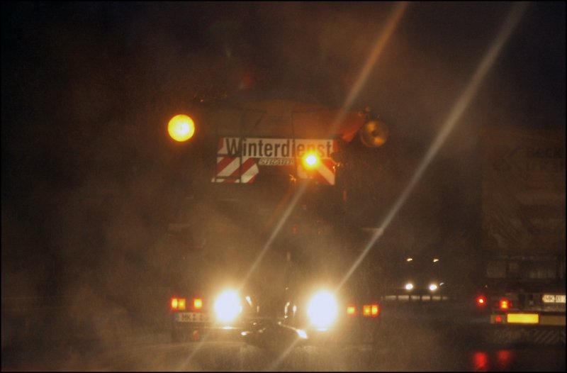 Wintereinbruch ende März! Atego 1828 der AM Lüdenscheid streut die A45 bei Meinerzhagen in den Morgenstunden...