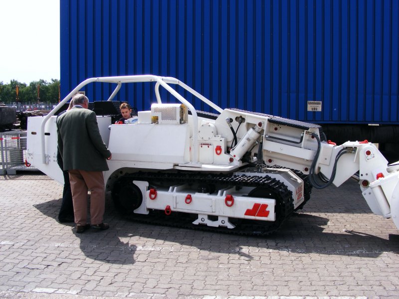 Ein Abbruchgerät an einem Liebherr-Hydraulikbagger auf dem Gelände des Bergwerks Auguste Victoria 3/7 in Marl beim Tag der offenen Tür am 9. Mai 2009.
