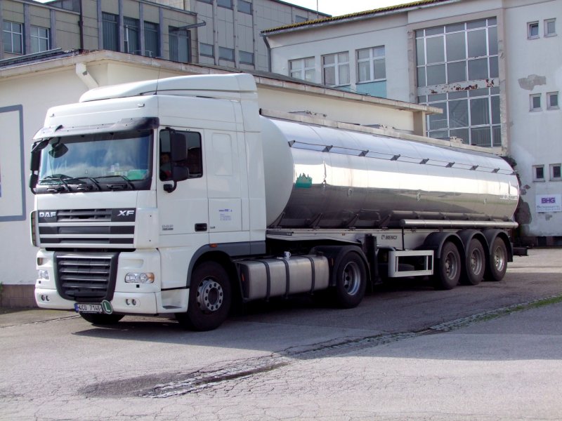 DAF_XF105.460 aus Tschechien verweilt über die Pfingstfeiertage in einer Seiteneinfahrt der Molkerei in Ried i.I.; 090531