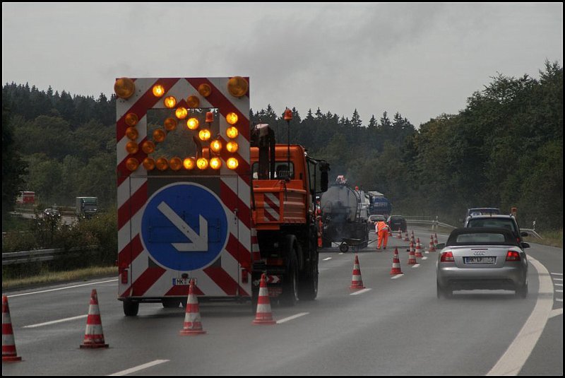 Das Bankett wird abgefrässt. Hier auf Höhe des Rasthofes Sauerland-Ost. (14.09.2009)