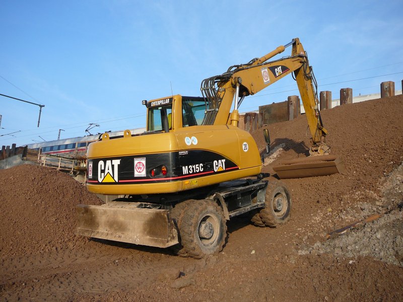 CAT M 315 C bei Böschungsarbeiten an Bahnstrecke Erfurt - Leipzig am 22.10.2009