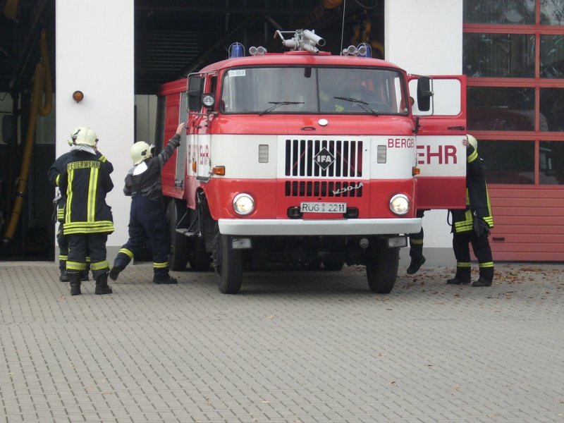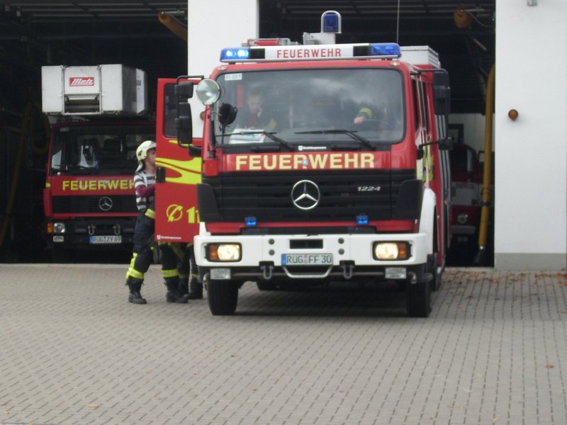Mit Blaulicht und Martinshorn verließ die Bergener Feuerwehr mit ihren Mercedes die Feuerwehrwache.