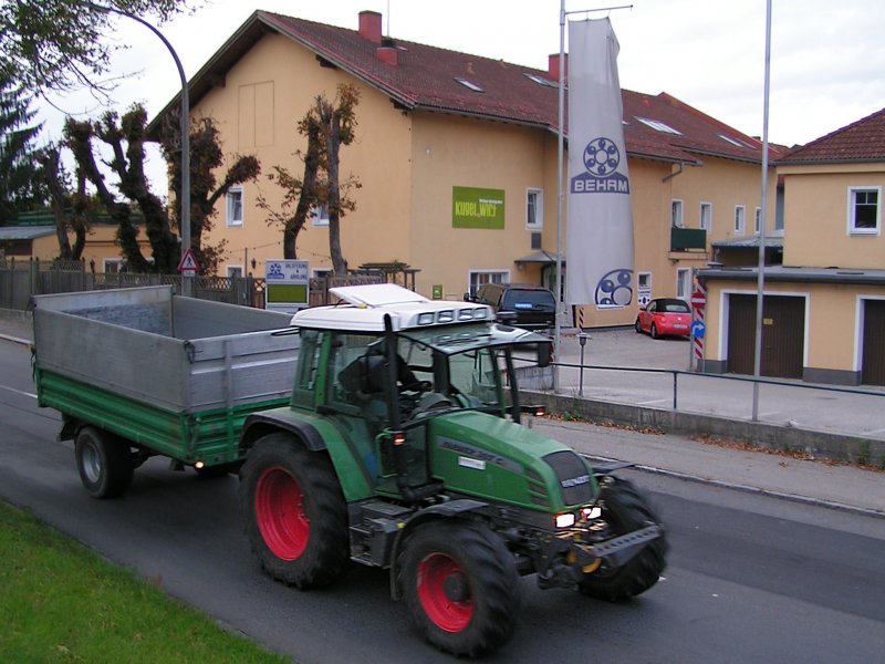 FENDT307C ist mit einem Einachskipper zügig im Stadtgebiet von Ried i.I. unterwegs;091008