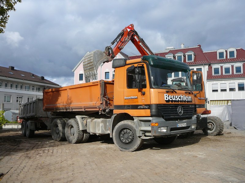 MB Actros des Bauunternehmens BEUSCHLEIN wird auf einer Baustelle in Werneck am 14.10.2009 beladen.