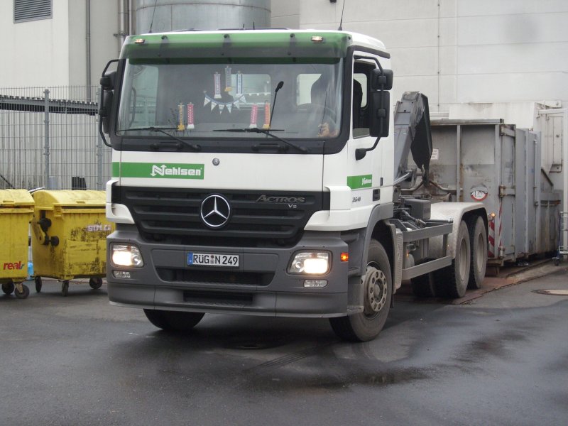 Mercedes-Absetzfahrzeug bei der Abholung eines Containers vor einem Supermarkt am 12.Oktober 2009 in Bergen/Rügen.