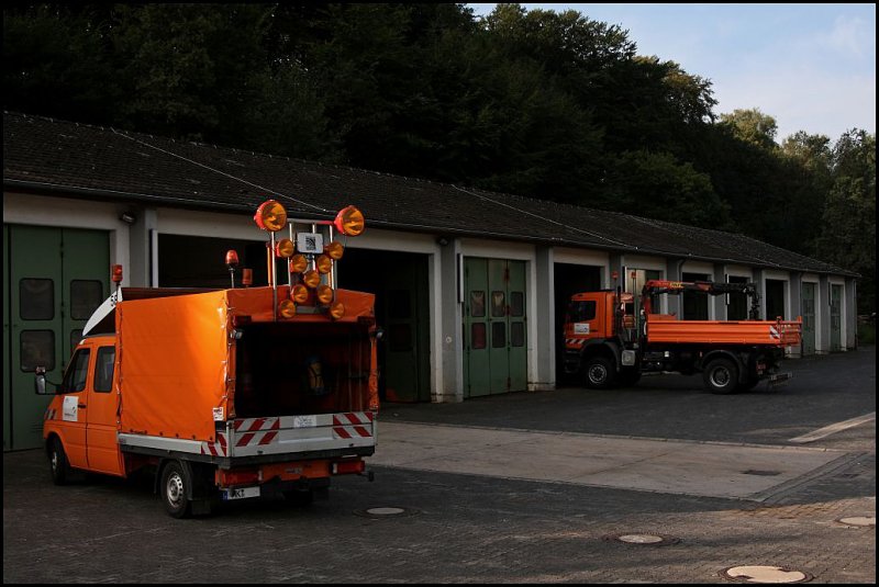 ... und der andere ATEGO 1828 mit Absperrtafel beim absichern der Baustelle. Aussbessern der Asphaltdecke.