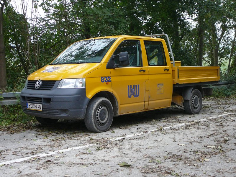 VW T 5 als Doppelkabiner mit Ladefläche steht an einer Brückenbaustelle in der Nähe von Großheringen am 22.10.2009