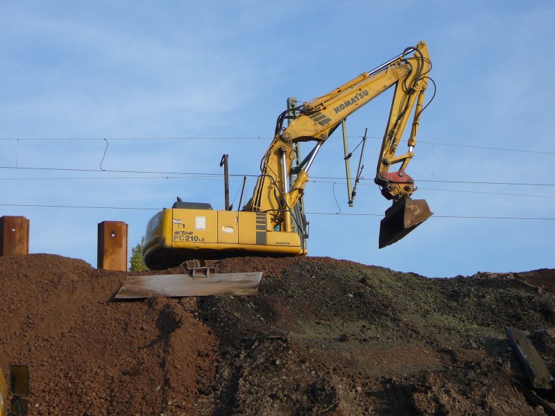 Komatsu Bagger auf einer Baustelle an der Eisenbahnlinie Erfurt - Leipzig am 22.10.2009