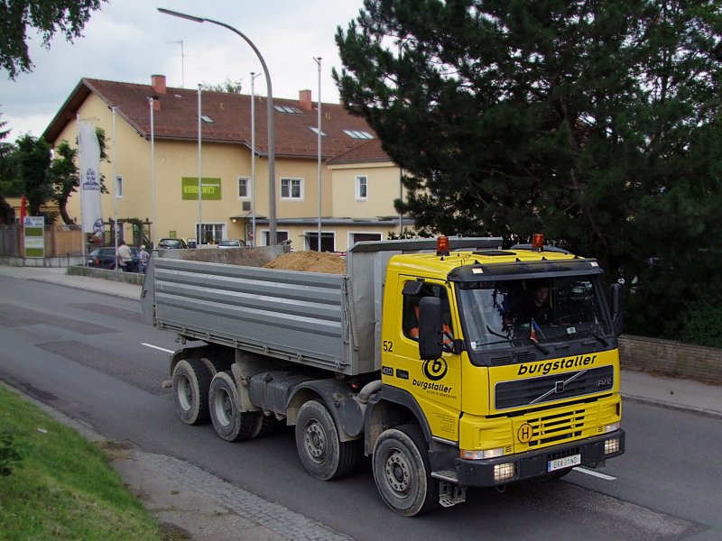 VOLVO-FM12_420 der Fa.Burgstaller ist mit einer Fuhre Schotter im Stadtgebiet von Ried i.I. unterwegs; 090710