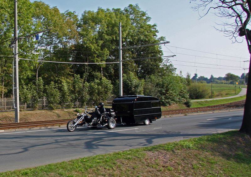 Ein Triker auf dem Weg in den Urlaub. Hoffentlich scheint dort keine Sonne! Gesehen am 19.09.2009 in Leipzig.