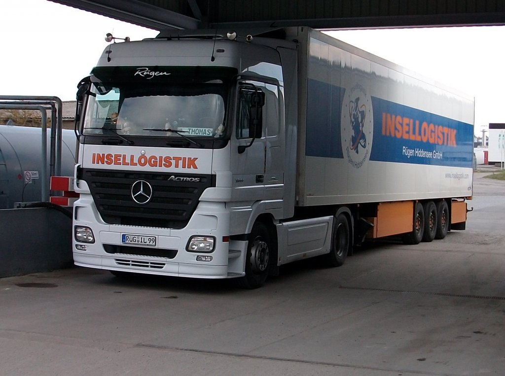 Auch dieser Mercedes-LKW muß mal tanken.Aufnahme am 31.März 2010 an der Dieseltankstelle im Industriegelände von Bergen/Rügen.