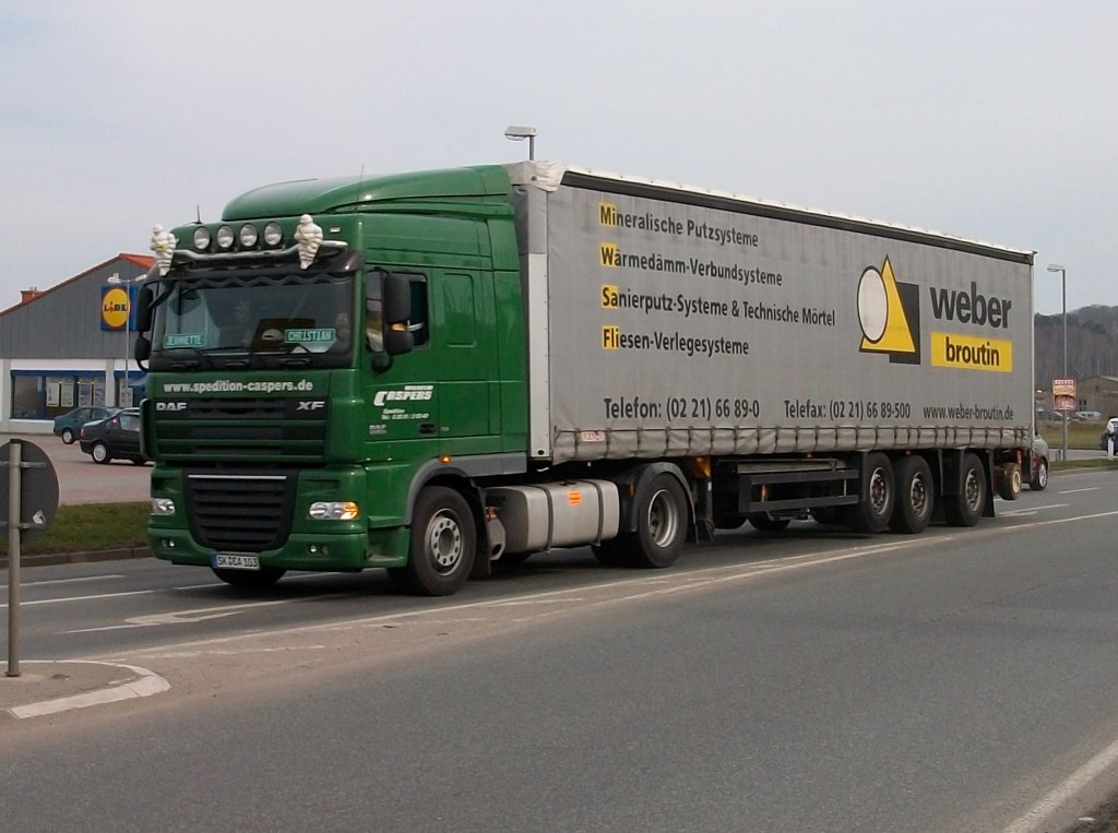 Vor dem Kino in Bergen/Rügen stand am 31.März 2010 dieser DAF-LKW um nach den Weg zu fragen.