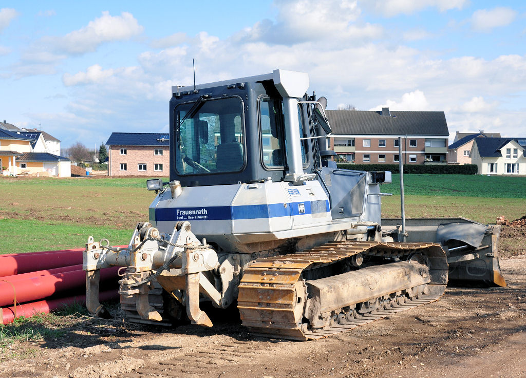 Grader im Abendlicht, "Strassenbau J. Scheiff", Euskirchen 01.04.2010