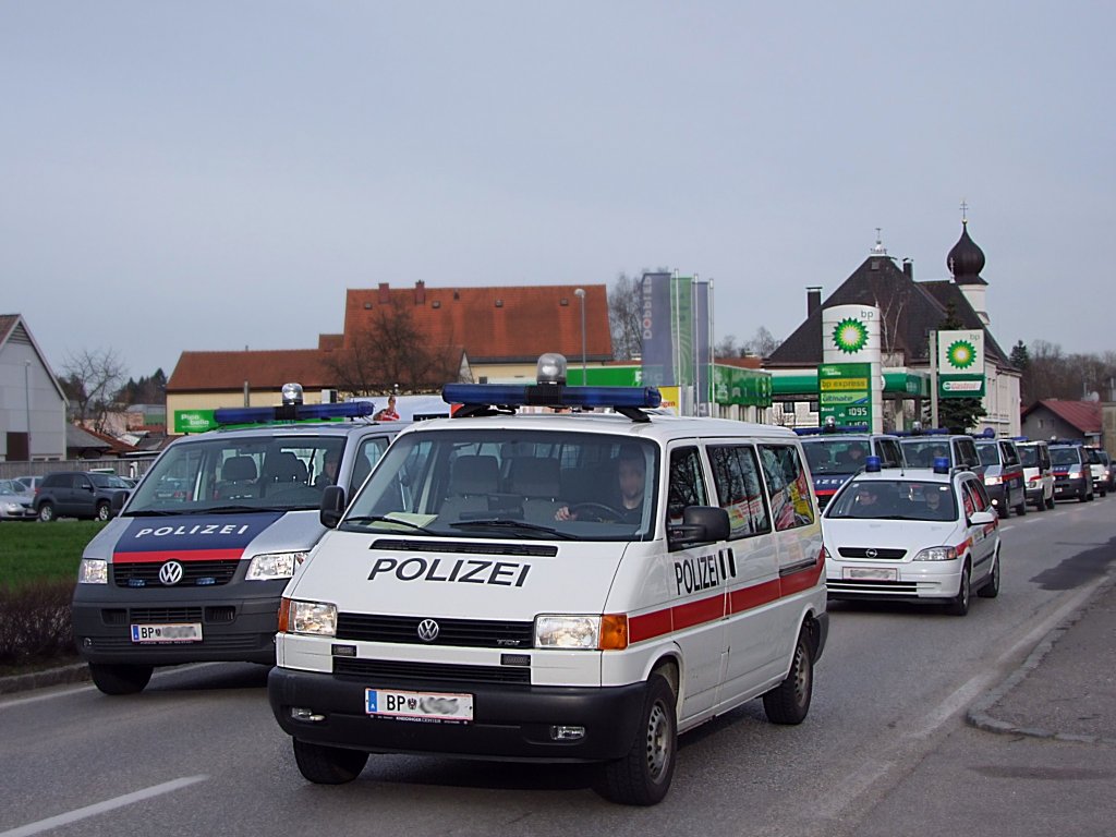 VW-T4 ist ein Teil einer Polizeiflotte,im Einsatz bzgl. des OÖ-Bundesligafußballderbys RIED÷LASK;100403