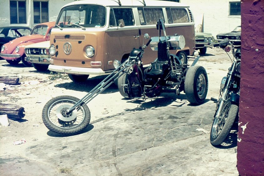 Dieses Foto entstand ca. Mitte der 80er Jahre in Los Angeles. Ein sehr frühes Modell eines Trike. Dahinter ein VW Bully Kleinbus. Dia digitalisiert.