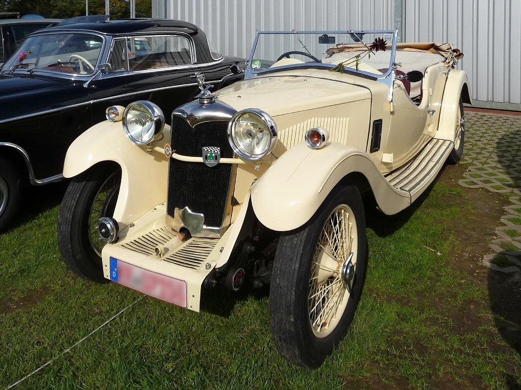 Ein Riley Nine Lynx Tourer, gebaut 1933-1936, vor den Hallen des Flugplatzes Niershorst (Grefrath, 11.9.2010)