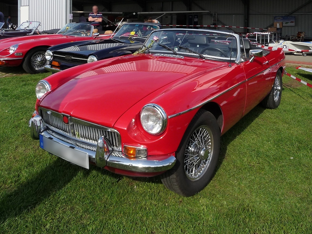 Ein MG MGB vor den Hallen des Flugplatzes Niershorst (Grefrath, 11.9.2010)
