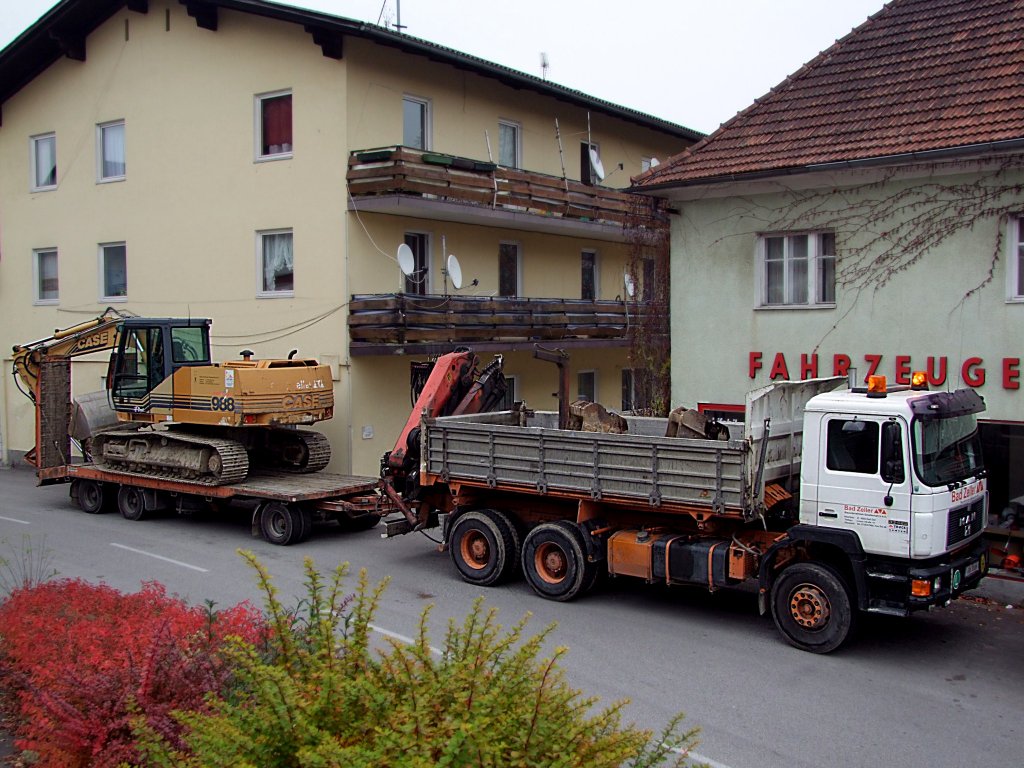 MAN 33.422 karrt auf dem Tiefladehänger Case968 zur nächsten Baustelle;101102