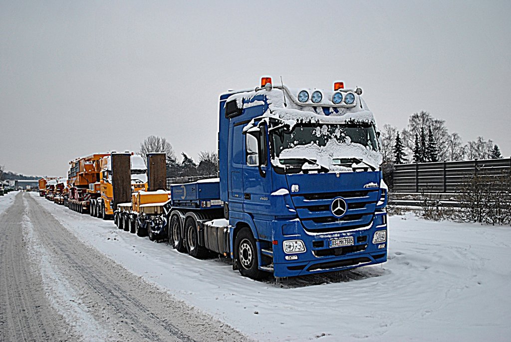 Mercedes Actros 4100 Schwerlastsattelzug auf der Autorastplatz "Lehrter See", am 19.12.2010.