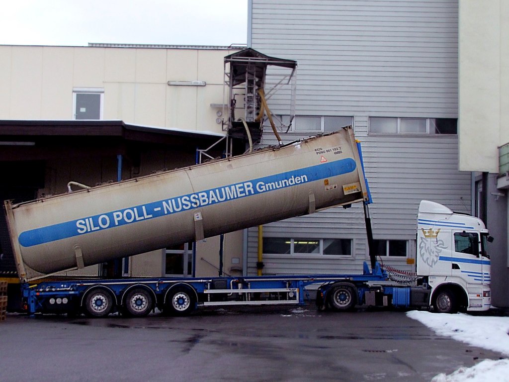 SCANIA mit Tankcontainer wird mit Milchpulver beladen;101220