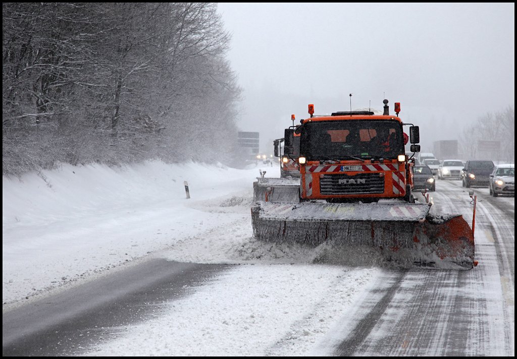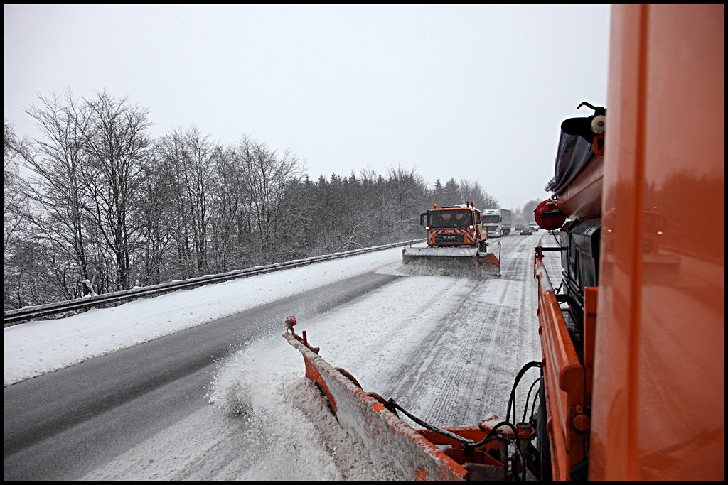 MAN 19.364 und ATEGO 1828 beim gestaffelten räumen der A45. (29.01.2010)