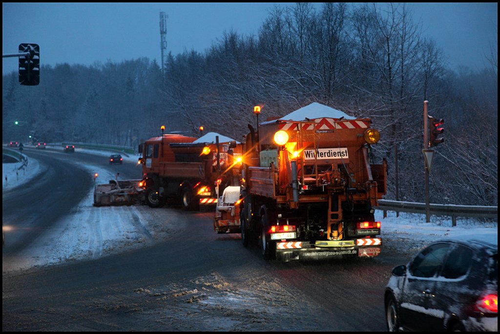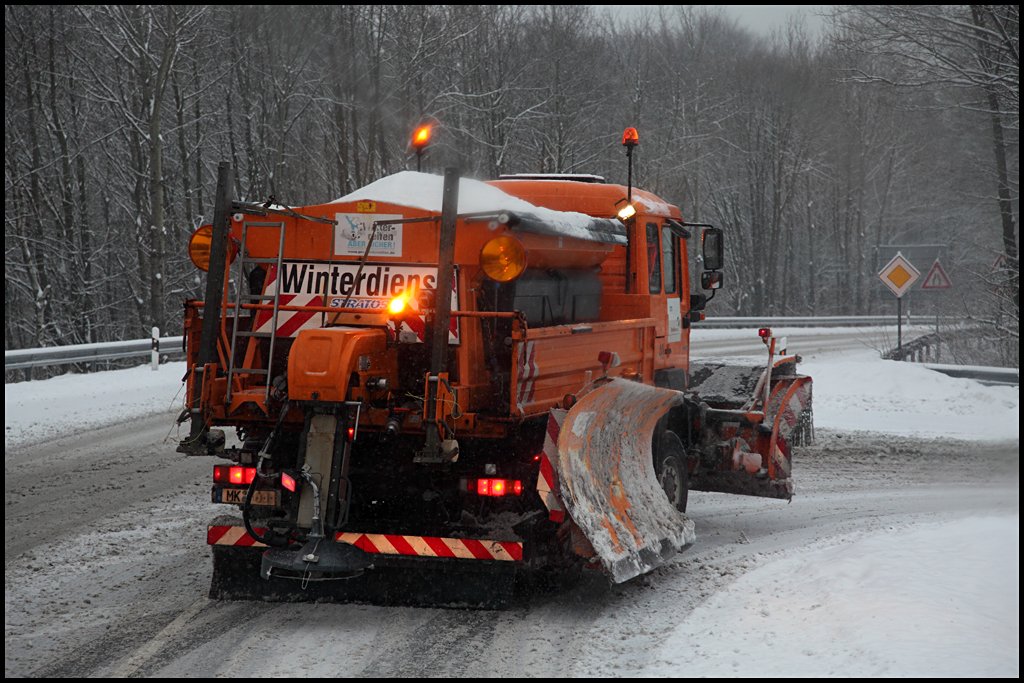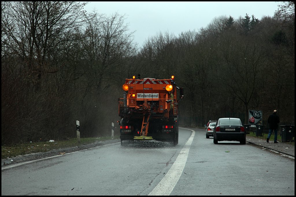 MAN 19.364 streut die Fahrbahn in Richtung Lüdenscheid. (Dezember 2009)