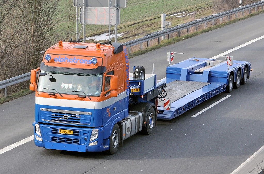 Volvo FH Tieflader, "Alphatrans", A61 bei Rheinbach, 08.02.2010