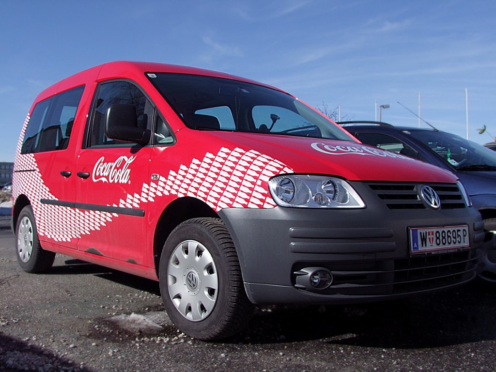 VW-Caddy von "CocaCcola" hat sich am Messegelände in Ried i.I. eingefunden;100227