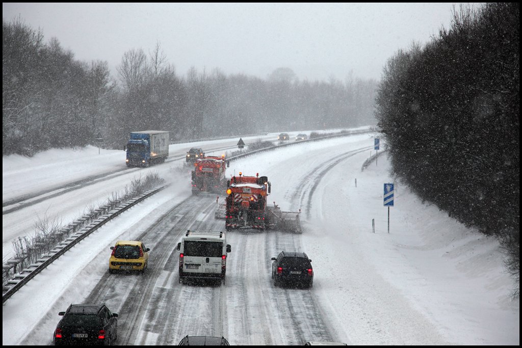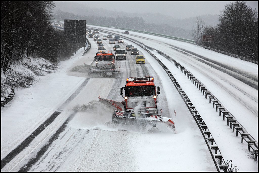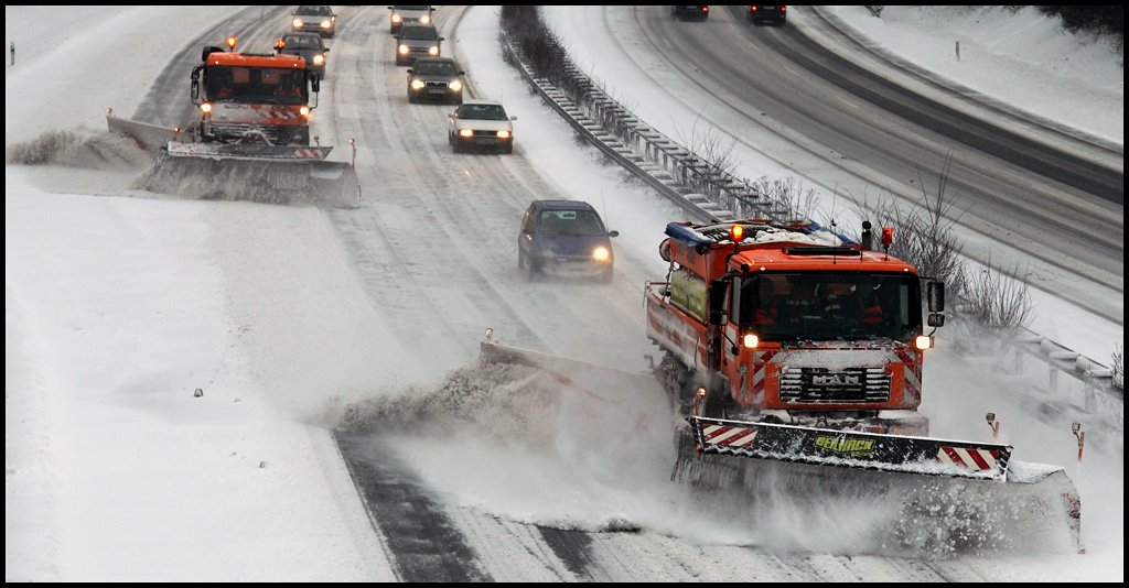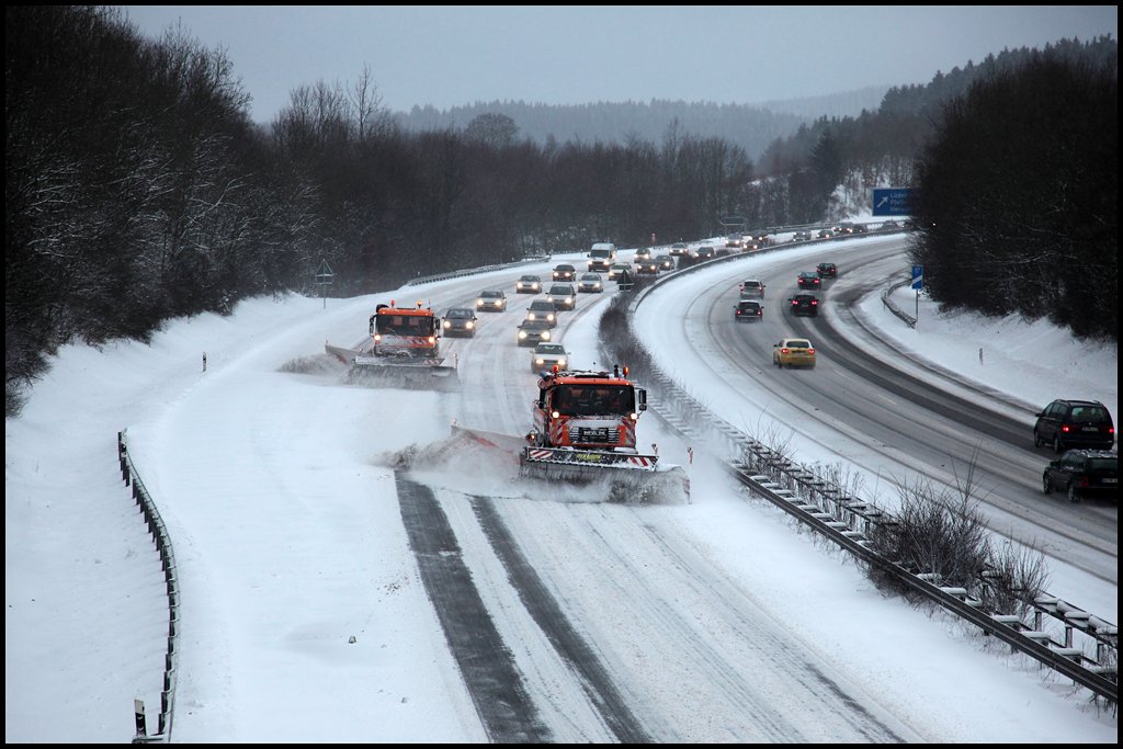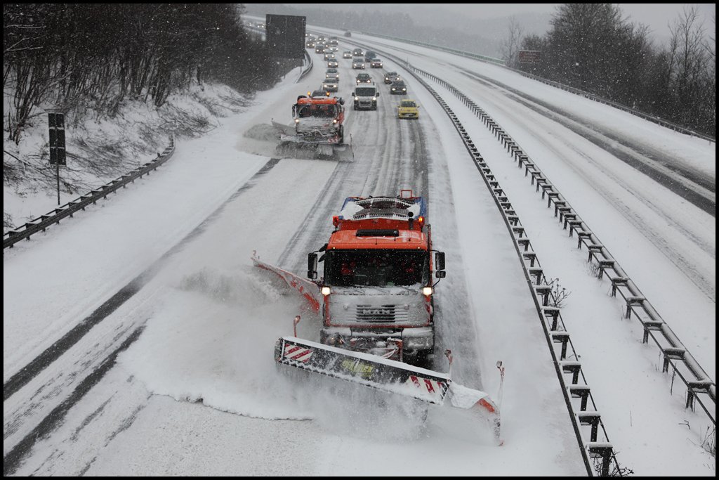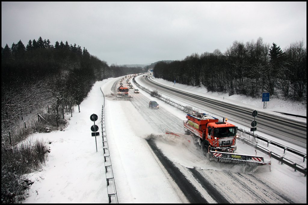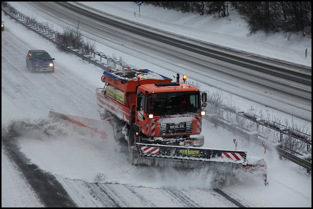 Schneeräumen auf der A45... MAN 19.364 und ACTROS 1831. (09.01.2010)