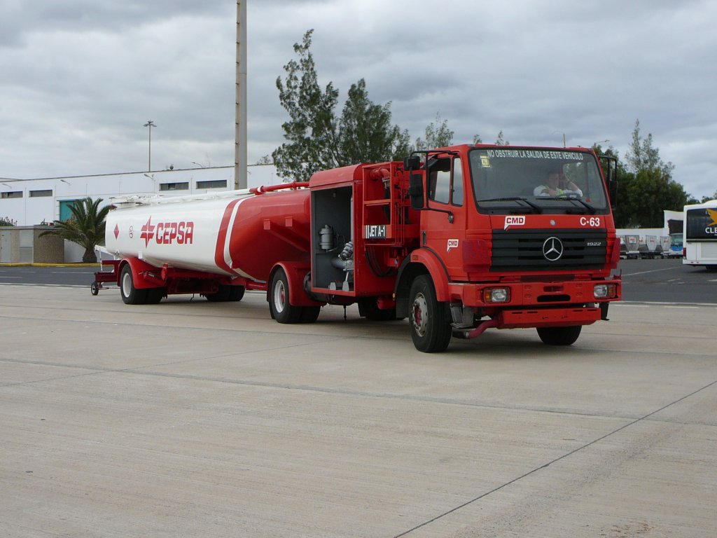 MB als Vorfeldtankfahrzeug der Mineralölfirma CEPSA auf dem Vorfeld des Airport Arrecife/Lanzarote im Januar 2010