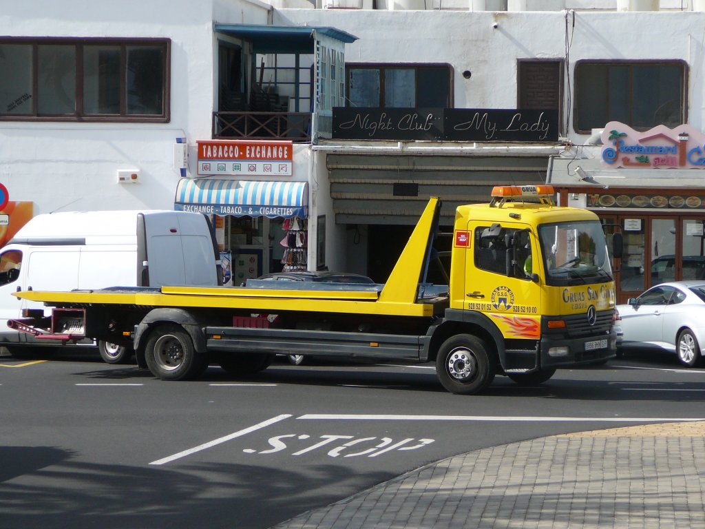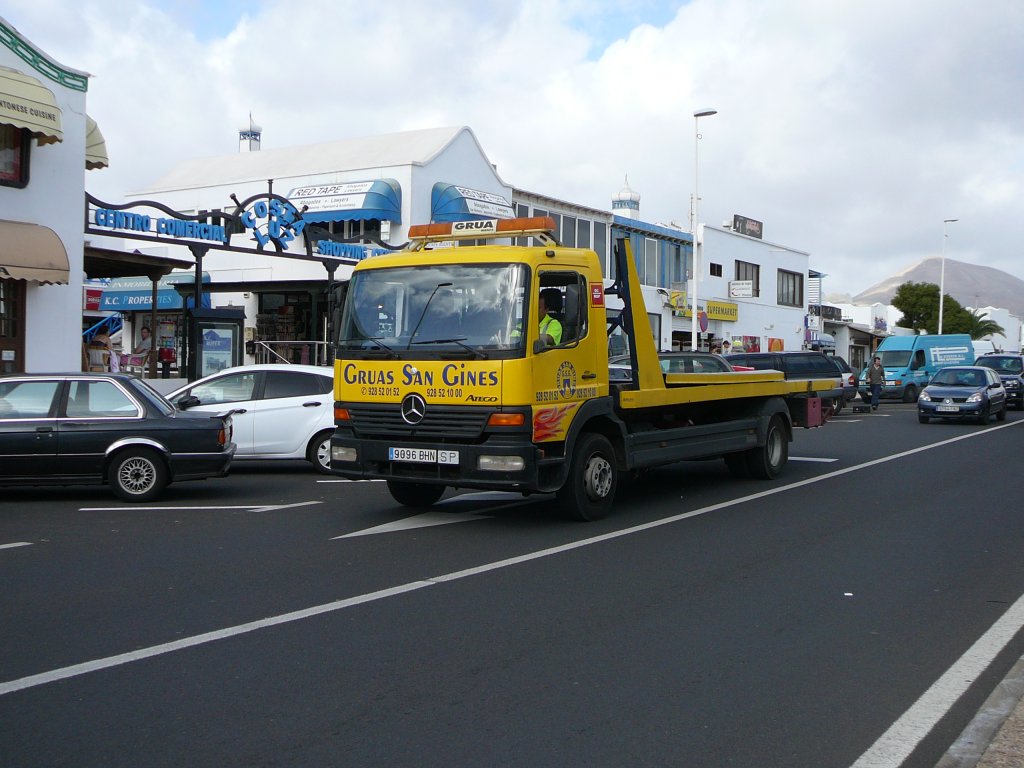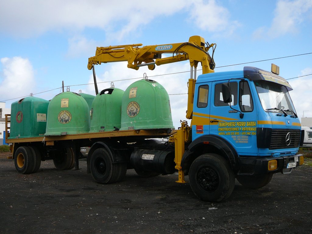MB 1928 als Transporter für Altglascontainer, ausgestattet mit einem TICO-Kran, gesehen auf Lanzarote im Januar 2010