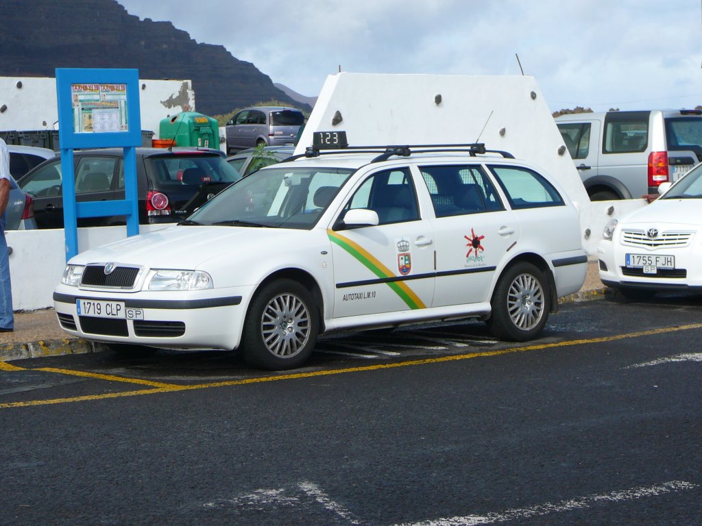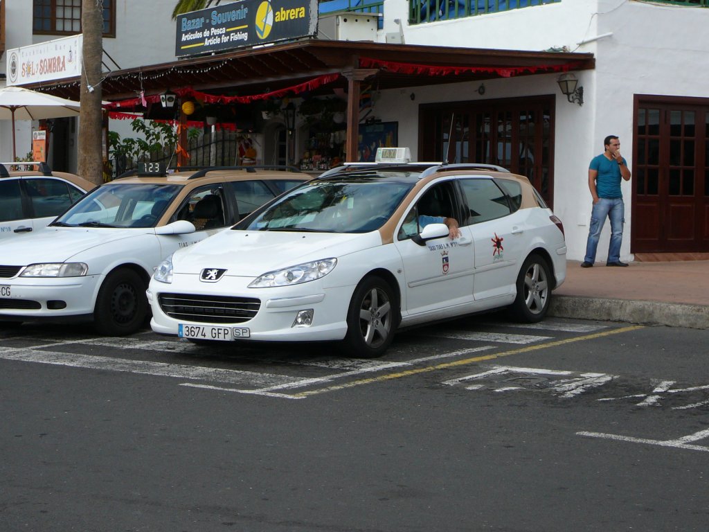 Peugeot als Taxi steht an einem Taxistand in Puerto del Carmen/Lanzarote im Januar 2010