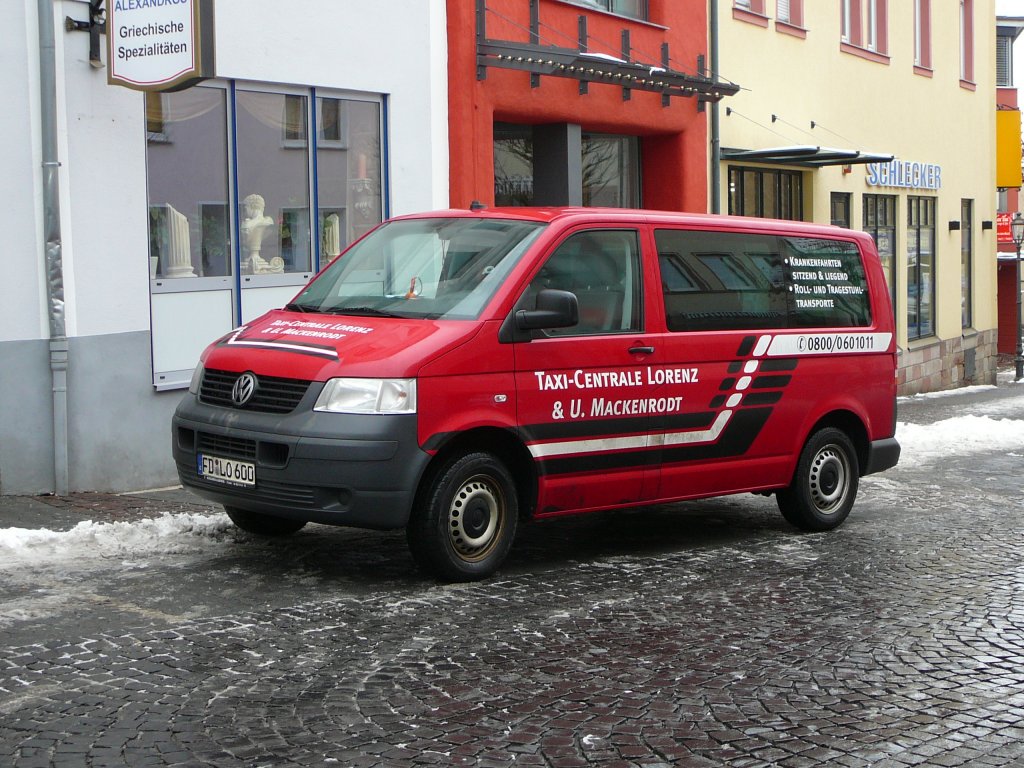 VW T 5 der Taxizentrale Lorenz & Mackenrodt im Januar 2010 in 36088 Hünfeld