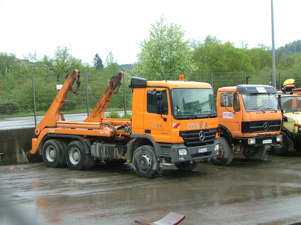 Alt trifft neu: Actros 2638 und NG 1624 der Firma SKS warten auf neue Aufträge.