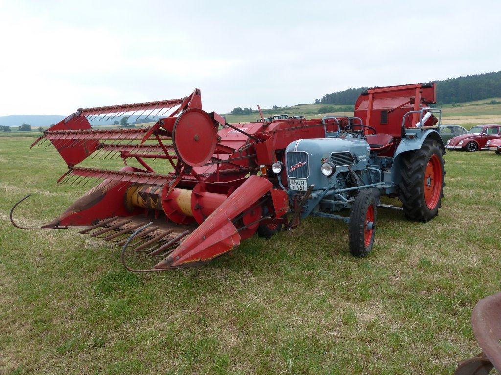 Eicher mit Anbaumähdrescher in Eiterfeld-Oberufhausen anl. Oldtimer- und Traktorenausstellung der Oldtimerfreunde Ufhausen am 04.07.2010