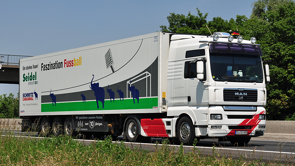 MAN eines namhaften Futtermittelherstellers ist am Freitagnachmittag Richtung Firmenzentrale unterwegs;100709