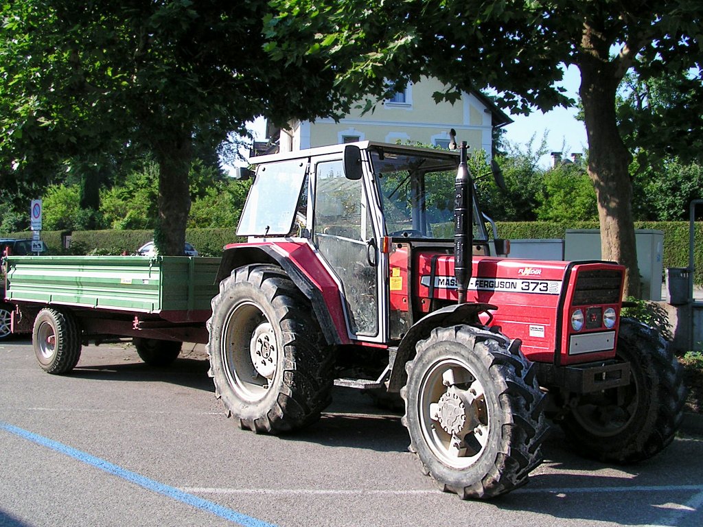 MF373S holt mit seinem Einachshänger alte Möbel im Stadtgebit v. Ried i.I.; 100703