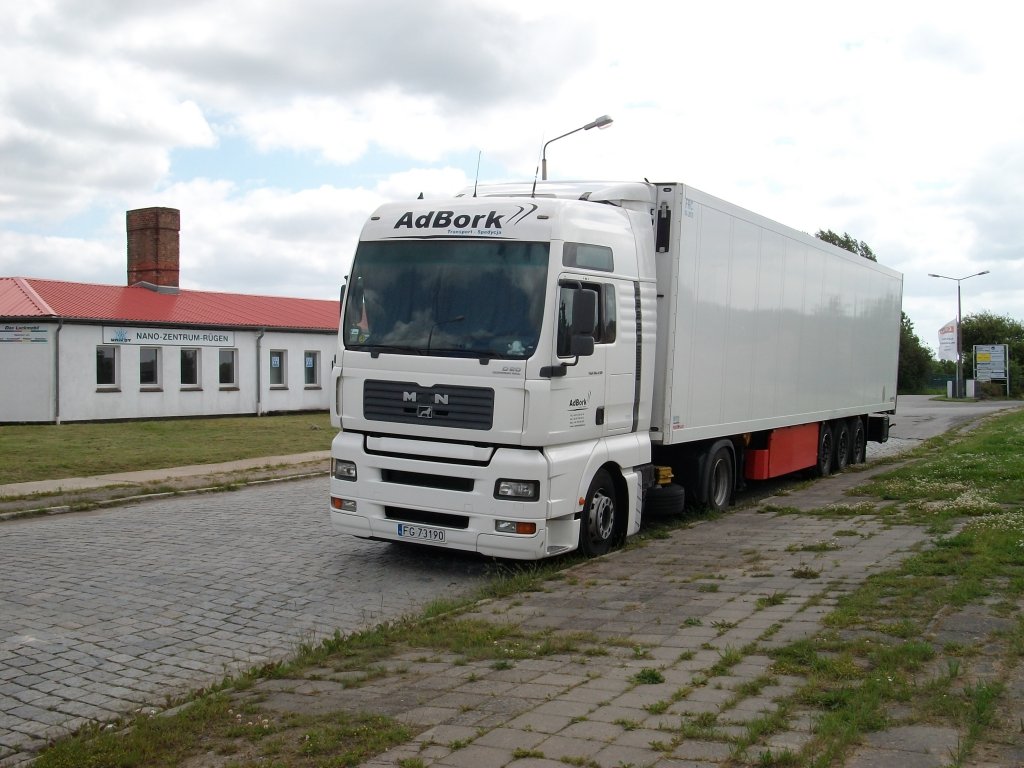 Unterwegs im Industriegelände von Bergen/Rügen war dieser MAN-Hängerzug.
