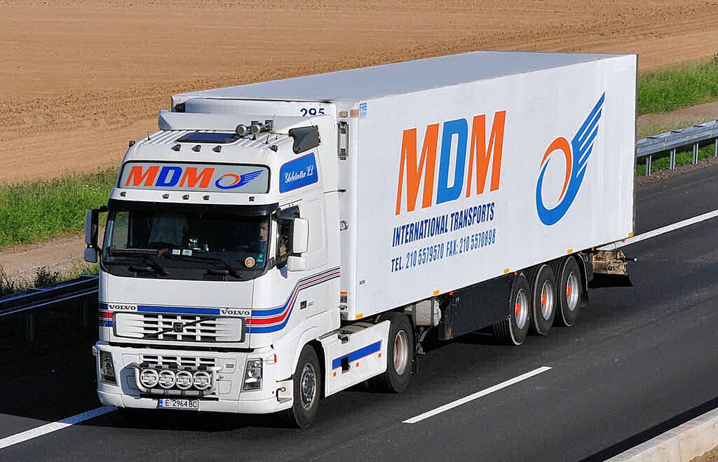 Eine Volvo F12 Schwerlast-Zugmaschine von Laukant Transporte.